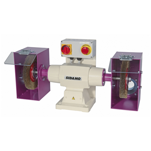 Corps en fonte d'aluminium montage sur roulements à billes étanche auto-lubrifiés boîtier de commandes conforme aux exigences des lycées et administrations sélecteur marche / arrêt cadenassable 4 points dispositif de sécurité à bobine à manque de tension arrêt coup de poing à accrochage écrans de protection en polycarbonate protection thermique automatique interne au moteur carters en acier embouti équipés d'une buse de captage des poussières tropicalisation à la demande modification du [...]