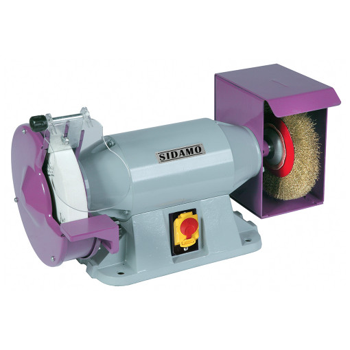 Corps en fonte d'acier montage sur roulements à billes étanches auto-lubrifiés interrupteur à bobine à manque de tension avec arrêt coup de poing à accrochage écran de protection en polycarbonate protection thermique automatique interne au moteur carters en acier embouti équipés d'une buse de captage des poussières pare-étincelles et porte-outils réglables à 2 mm de la meule puissance (kW) : 0,9 alimentation (V) : 230 mono vitesse de rotation (tr/min) : 2 800 dimensions de la meule (mm) : 2 [...]