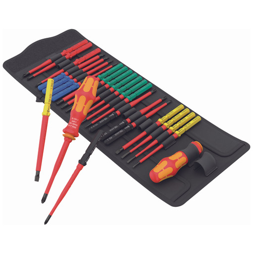 24 lames interchangeables VDE avec repéreur d'outils "Take it easy" (code couleur en fonction des empreintes et indication de la taille gravée au laser):