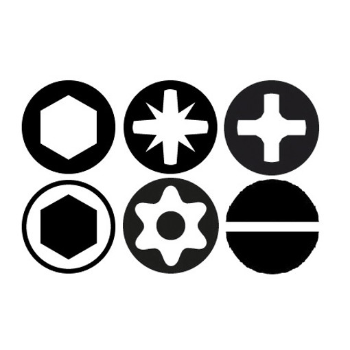 | empreinte | fente - phillips - pozidriv - resistorx - 6 pans |