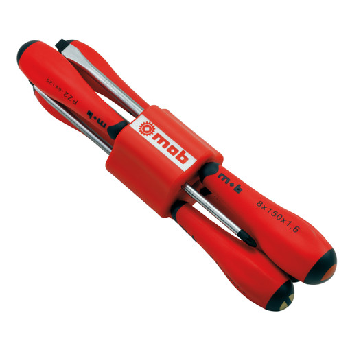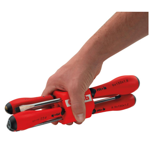 Support permettant aux tournevis de rester organisés facilitant ainsi leur identification et leur recherche dans la caisse à outils système de verrouillage des lames maintenant fermement les tournevis en place forme innovante du support assurant une parfaite stabilité sur une surface plane, un transport facile et un rangement optimisé tournevis RedGrip : couple de vissage et de dévissage élevé grâce au manche 6 lobes en néoprène antidérapant manche bi-matière ergonomique résistant aux produ [...]