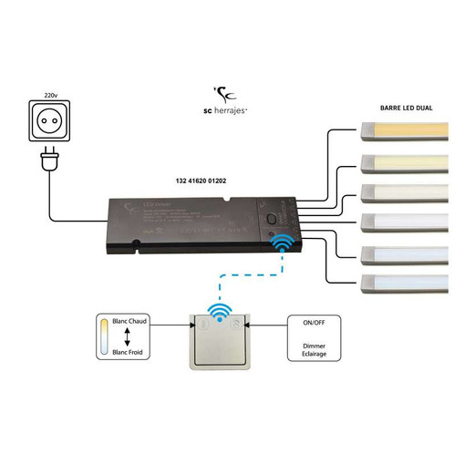 Transformateur radio 90W tout en 1 pour barre LED DUALPossibilité de varier l'intensité et changer la couleur avec interrupteur dédiéInterrupteur radio inclus
