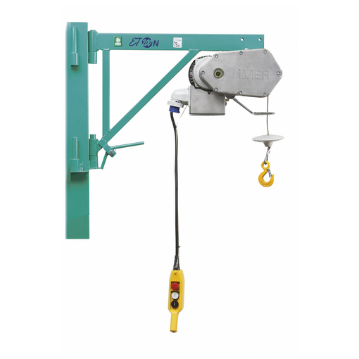 Idéale pour les opérations qui ne requièrent pas de potence télescopique équipements de série : - levier de mise en position travail - prise IP 67 prédisposition chariot pour utilisation d'un chevalet dispositif de sécurité à la montée commande directe boîtier IP 65 à 3 boutons 1,50 m moteur auto-freinant caractéristiques : - capacité de levage maxi : 200 Kg - vitesse moyenne de levage à pleine charge : 19 m/min - Ø câble acier : 5 mm - longueur câble acier : 31 m - hauteur de travail [...]