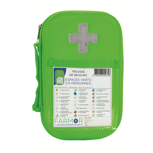 Trousse de secours "Espaces Verts" 2/4 personnes en EVA vert fluo et croix rétro réfléchissante