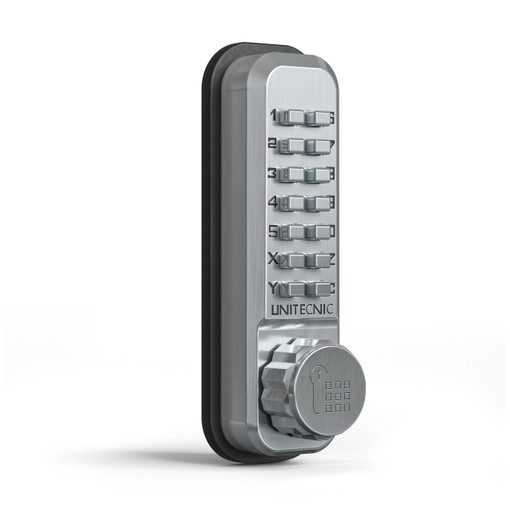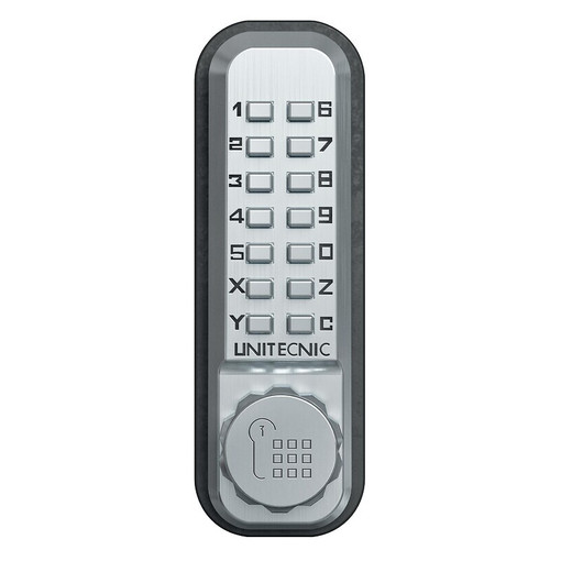 VERROU MECANIQUE CODE UNITECNIC 2200 PÊNE DORMANT EN APPLIQUE ALU BROSSE |