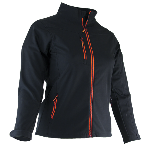 Veste softshell femme unie ML - zips contrastants - 1 poche poitrine + 2 poches basses - bas de manches resserrables par pattes auto aggripantes - poche invisible zippé bas de manche droite - dos rallongé.