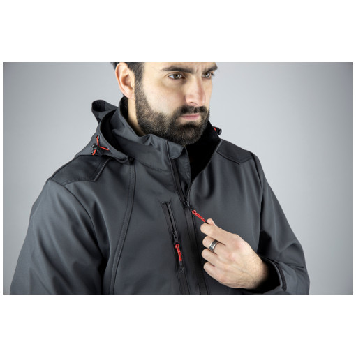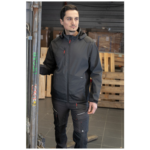 Composition : Softshell 3 couches Couche 1 : 94% polyester 6% élasthanne Couche 2 : Membrane imper-respirante : Imperméabilité : 8000 mm - Respirabilité : 2000 g/m2/24h Couche 3 : Polaire 100% polyester - 300 g/m2 Composition renforts : Oxford 300D imperméable 100% polyester - 175 g/m2 Capuche doublée polaire amovible par zip avec visière rigidifiée Col montant avec protège menton Fermé par zip imperméable Bas de manche ajustable par patte et scratch Bas ajustable par élastiques et stoppeurs [...]