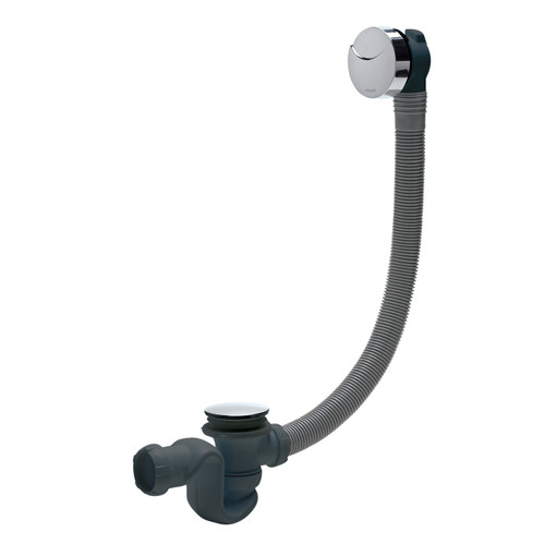 Vidage complet NF pour équiper les baignoires, incluant une bonde, un trop-plein et un siphon compact et imbouchable avec garde d'eau de 50 mm