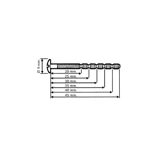 Vis tête Ø9 mm fendue en croix en acier bichromaté.